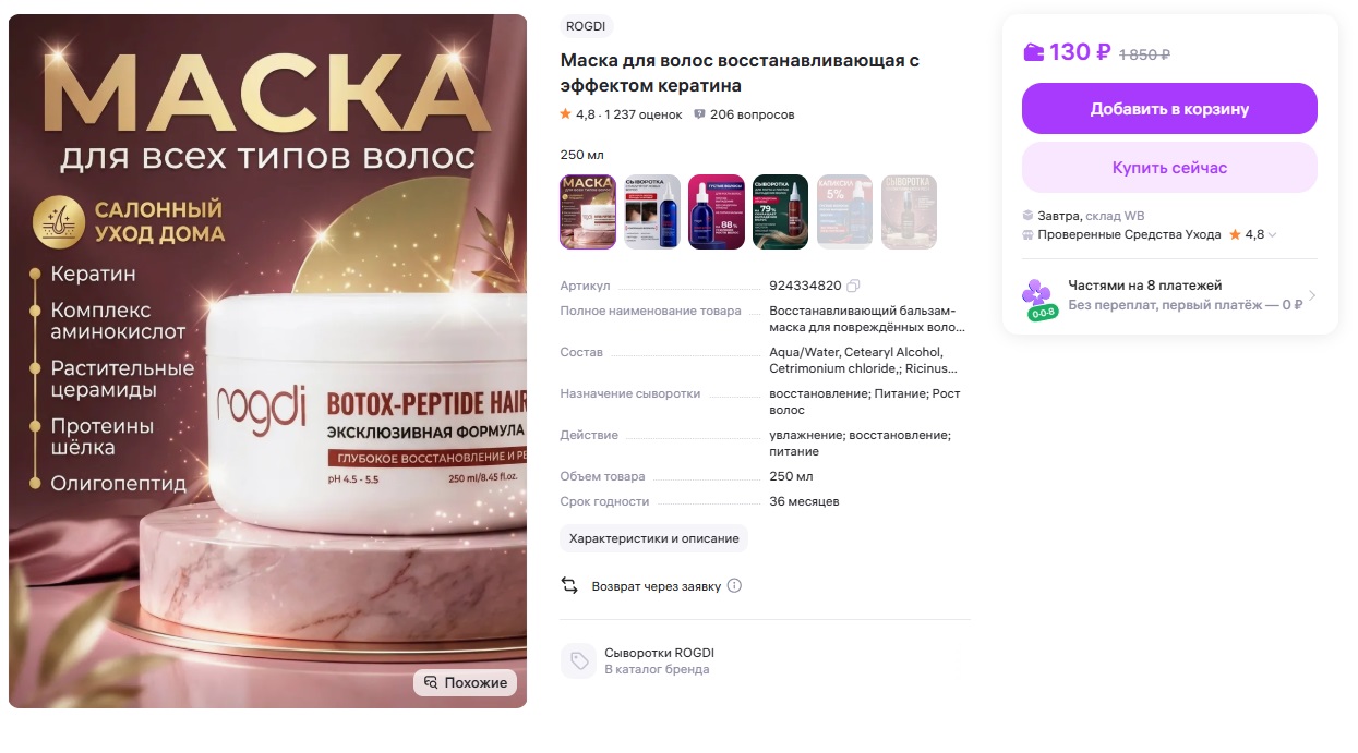 Хорошая цена вроде и отзывы есть. Питает, укрепляет и возвращает волосам здоровый вид. Маска также укрепляет волосяные фолликулы и способствует уменьшению выпадения волос.