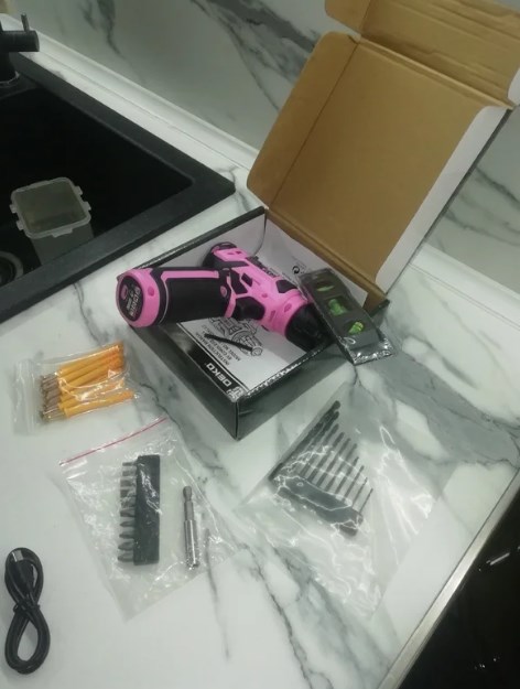 В комплекте уже и биты, и свёрла, и даже уровень. Для домашних дел самое то: полочку повесить, мебель собрать, что-то подкрутить. Я себе, наверное, возьму, а то вечно у мужа просить, а теперь сама буду