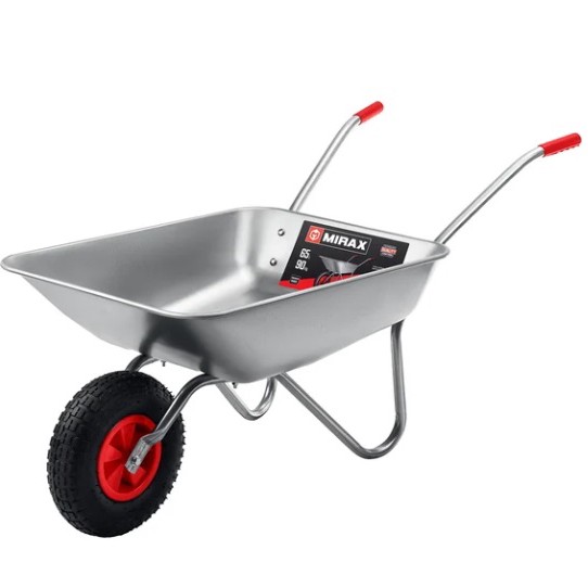 А на ВсеИнструменты заберешь её за 2005₽. Кузов из оцинкованной стали, грузоподъёмность 90 кг, а значит для садовых работ хватит, мешки с удобрениями и песок без проблем. Пневматическое колесо 330 мм легко катится по огороду, траве, гравию, не застревает, как пластиковое. Хорошая рабочая лошадка для дачи.