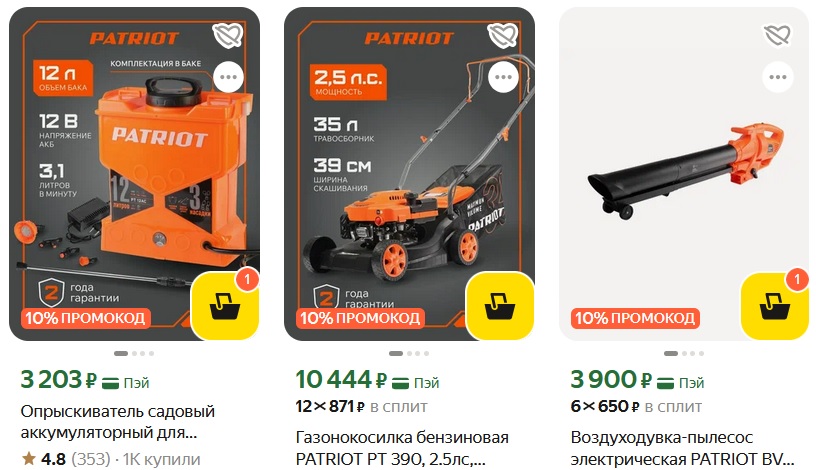Низкие цены на широкий садовую технику PATRIOT. Бренд известный, популярный и надёжный.