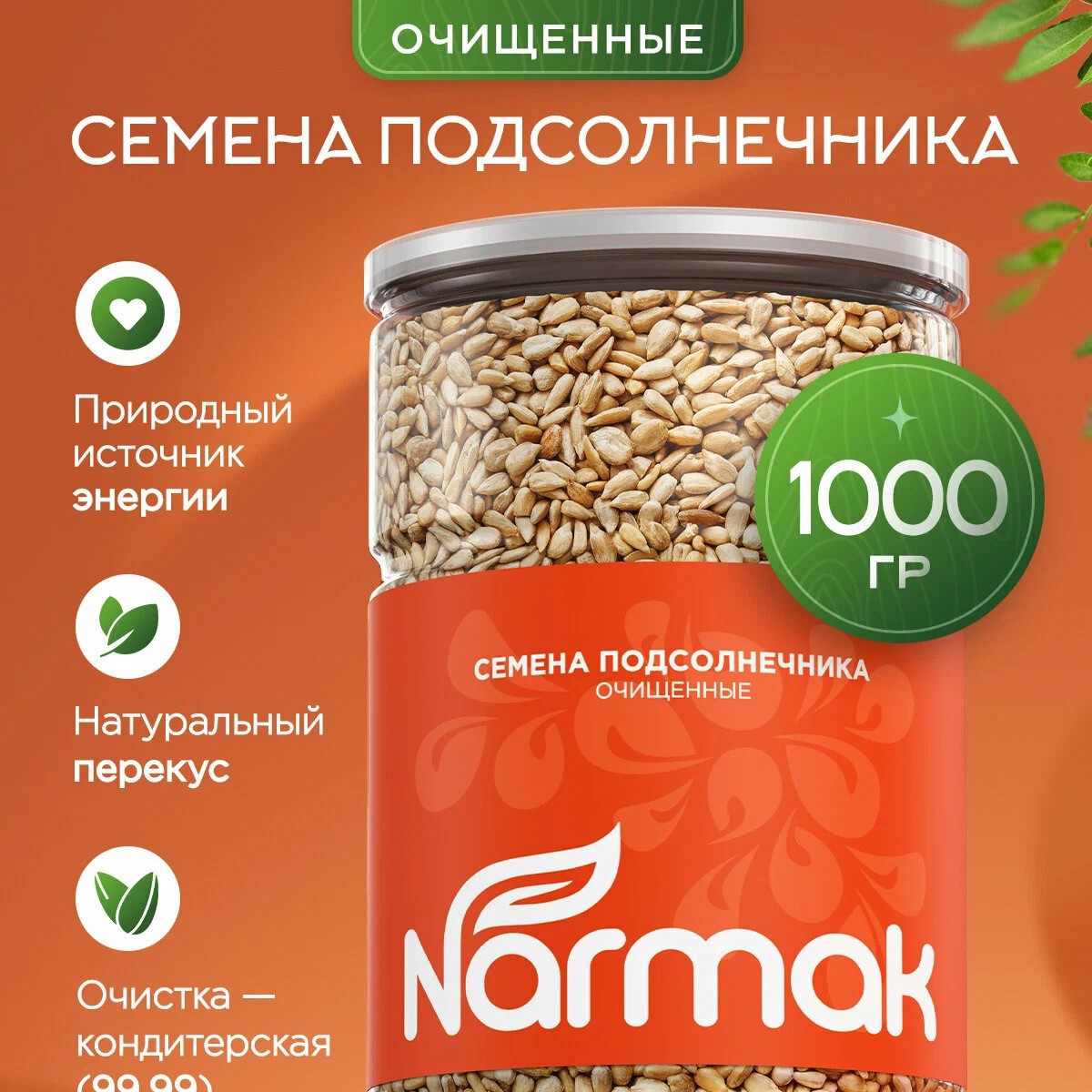 Очищенные семечки подсолнечника, без добавок, отлично подойдут в качестве полезного перекуса. Содержат клетчатку, белок, аминокислоты. Можно добавлять в салаты.
