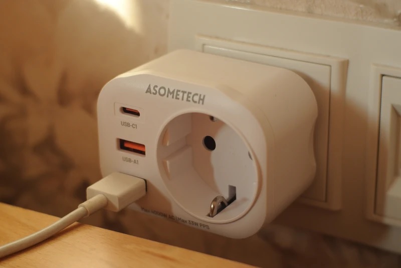 Это практичное устройство для дома - розетка и зарядник в одном. Розетка полноценная, номинальная мощность 4000 Вт, можно включать чайник, обогреватель и другие устройства. Есть два USB-A и один USB-C порты суммарной мощностью 33 Вт, поддерживают протоколы быстрой зарядки PD и QC.