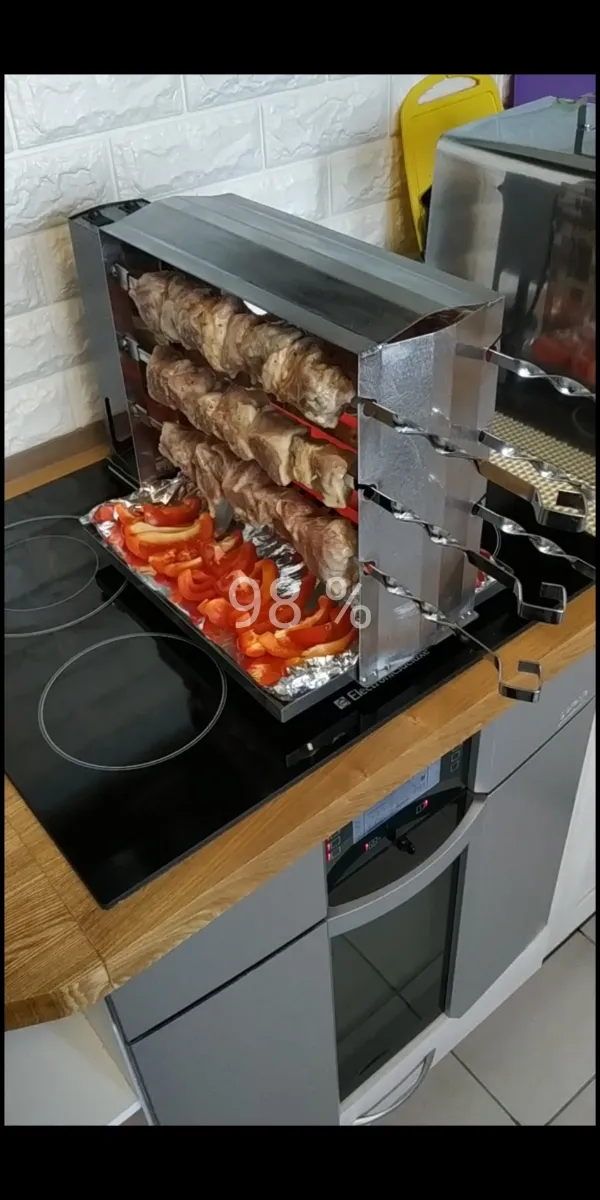 Шашлык зимой можно готовить дома - нашёл электрическую модель. Мощность 1700 Вт, в ней установлено четыре шампура, корпус сделан из нержавеющей стали, весит примерно 3,2 кг.