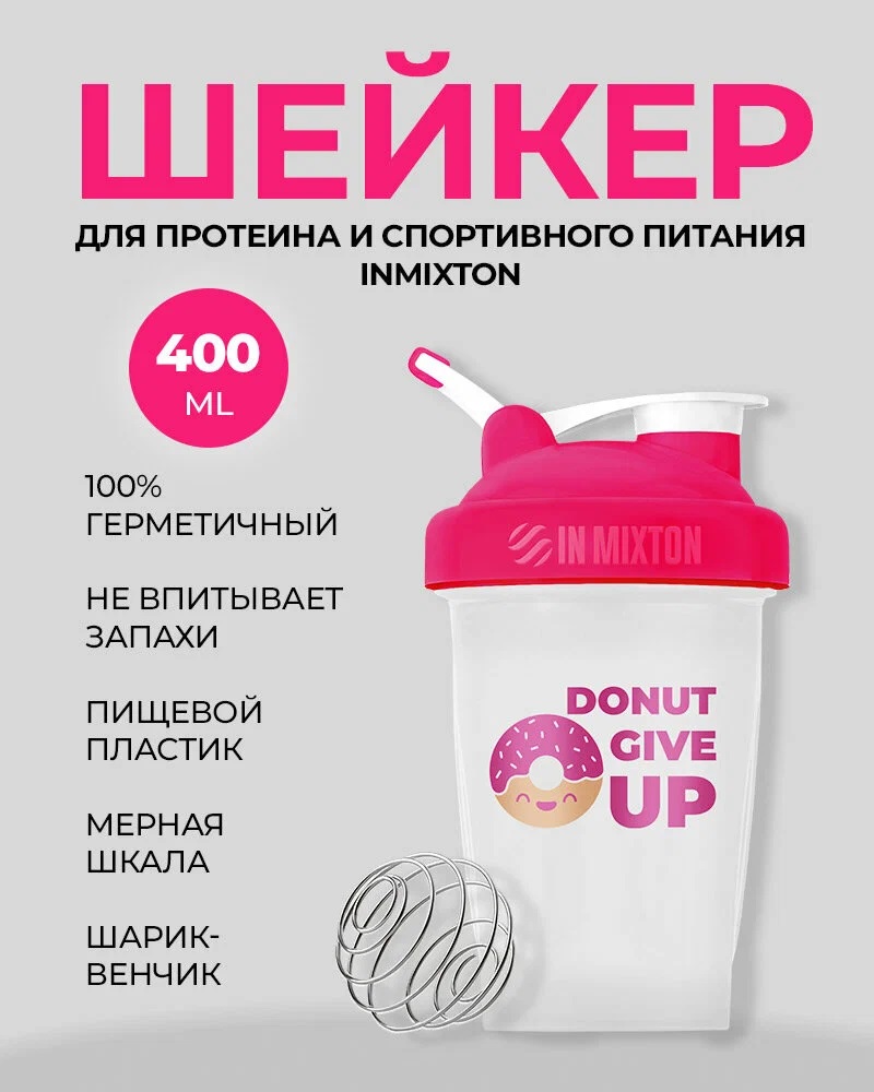 Всего лишь 106р за шейкер, удобный, простой. Подойдёт для размешивания протеина или коктейлей. Объём 400 мл, высота 17 см, мерная шкала нанесена на стенку, изготовлен из пищевого пластика, крышка плотно закрывается, есть шарик-сетка.