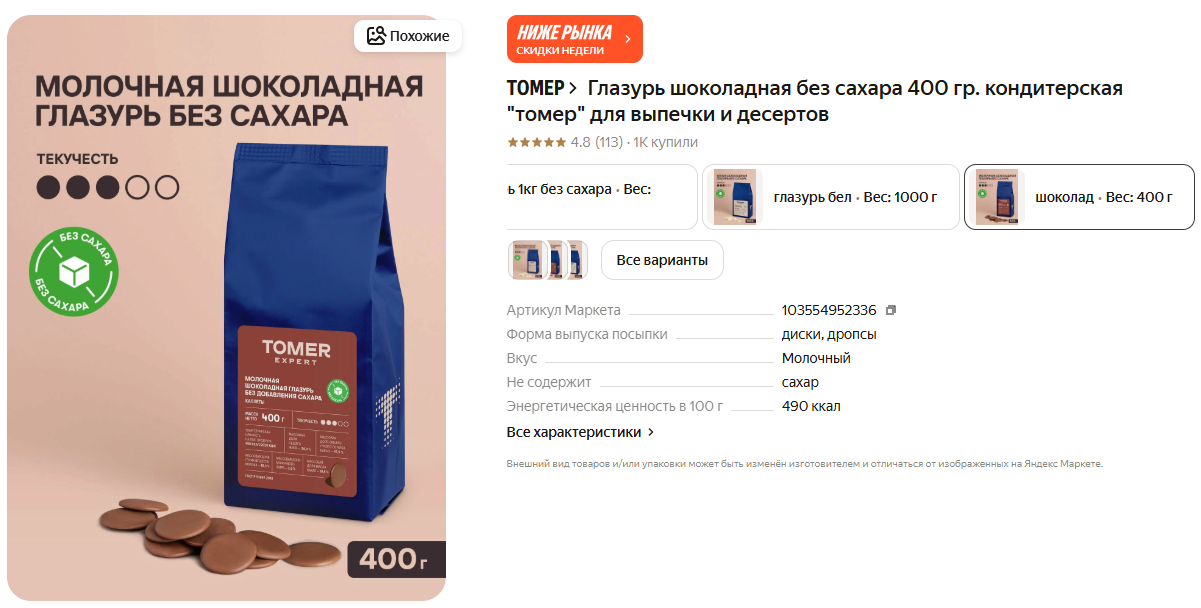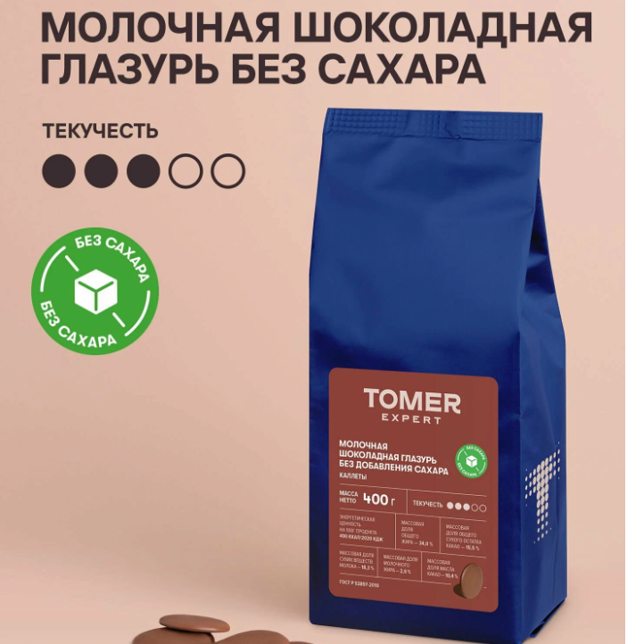Глазурь шоколадная без сахара, 400 г - 255 ₽. Для покрытия десертов, капкейков или выпечки.