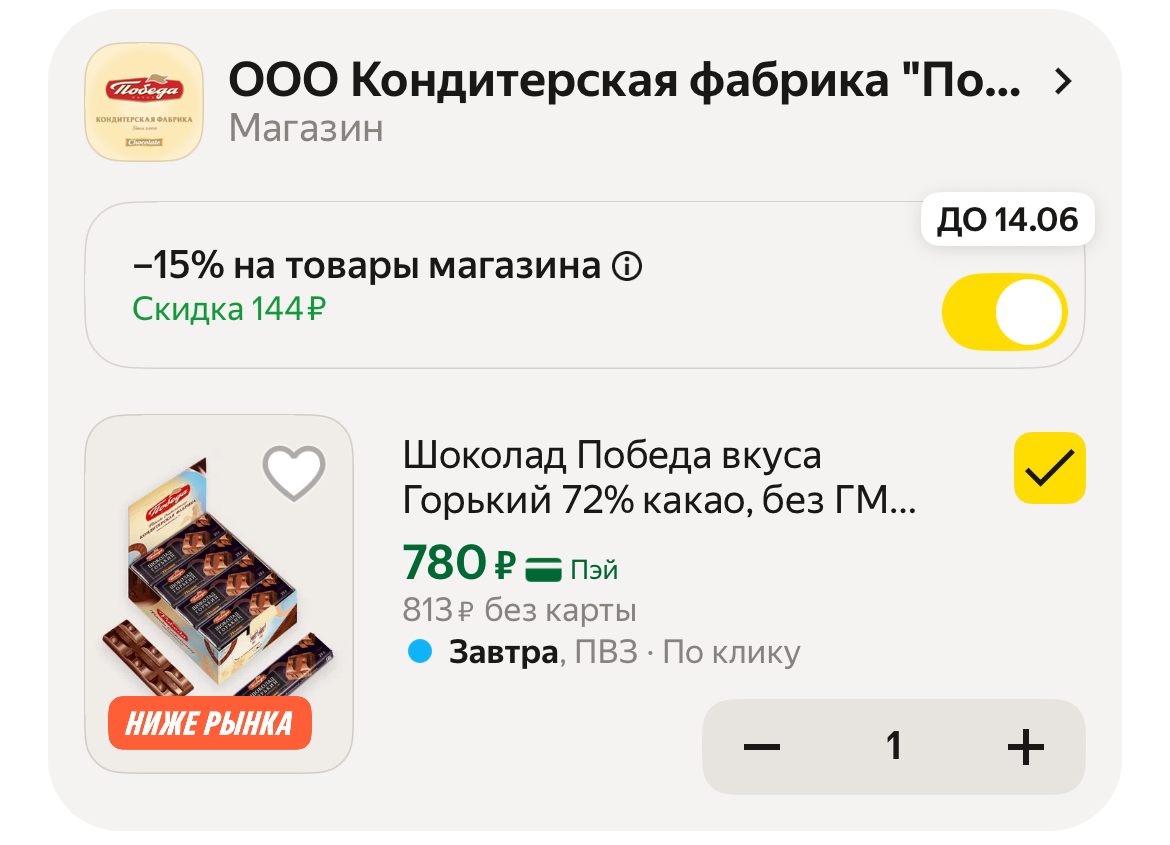 Промокод сработает на все товары по ссылке и даст скидку 15%.