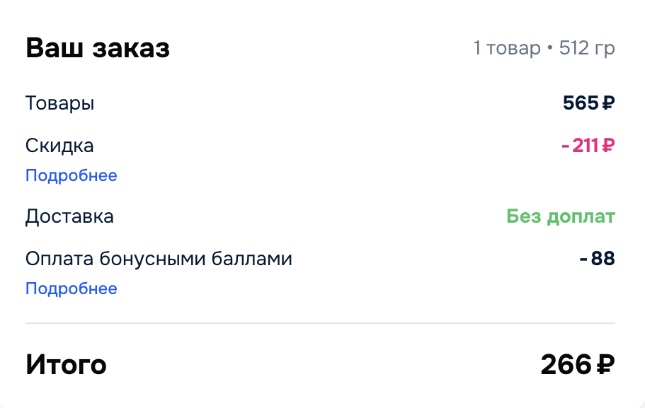 Забираем 100 бонусов продавца и списываем при оформлении заказа. Получается 266р за 20 батончиков - это чуть больше 13р за штуку. В каталоге можно еще взять конфет по выгодным ценам.