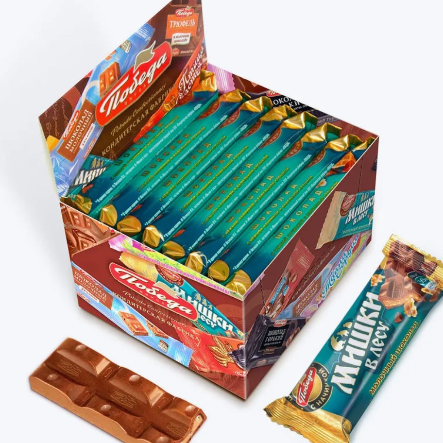 Шоколадный батончик Победа вкуса Мишки в лесу, с шоколадно-вафельной начинкой, 30 г/16 шт