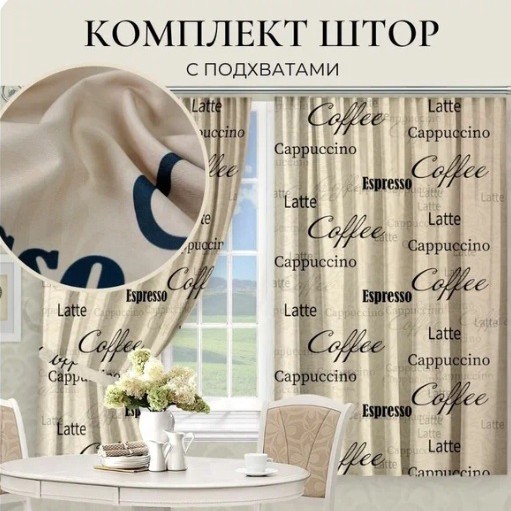 На кухню можно взять что-то подобное - модель 41K, 2 коротких портьеры 140x180 см с подхватами (638₽).