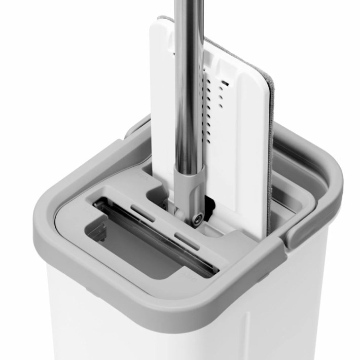 Ручка регулируется до 125,5 см - и высокому человеку не нагибаться. Функция отжима прямо в ведре: засунул, пару раз провернул и готово. Никакой возни, мокрых рук и грязных полов.