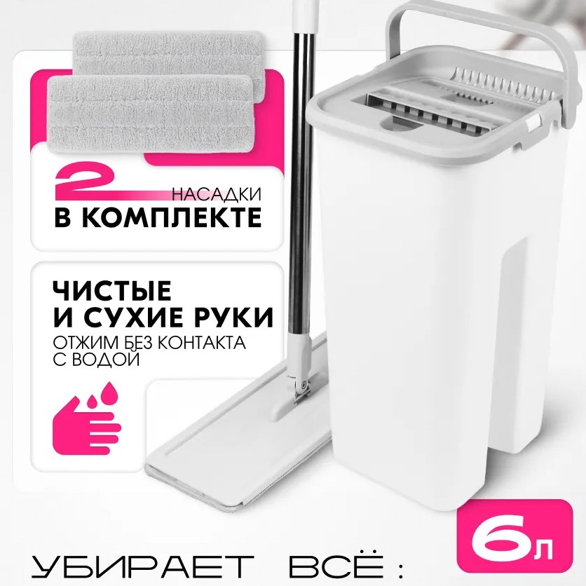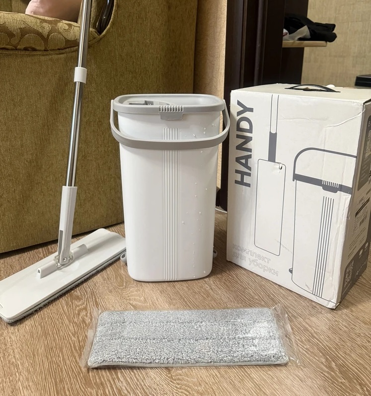 Современный домашний инвентарь 21 века. Как и у всех подобных комплектов отжим прямо в ведре - руку не намочил, спину не надорвал. Китайское чудо, которое не развалится после трёх уборок. Для дома норм, для офиса - тем более. Приятно, что 2 насадки сразу идут в комплекте.