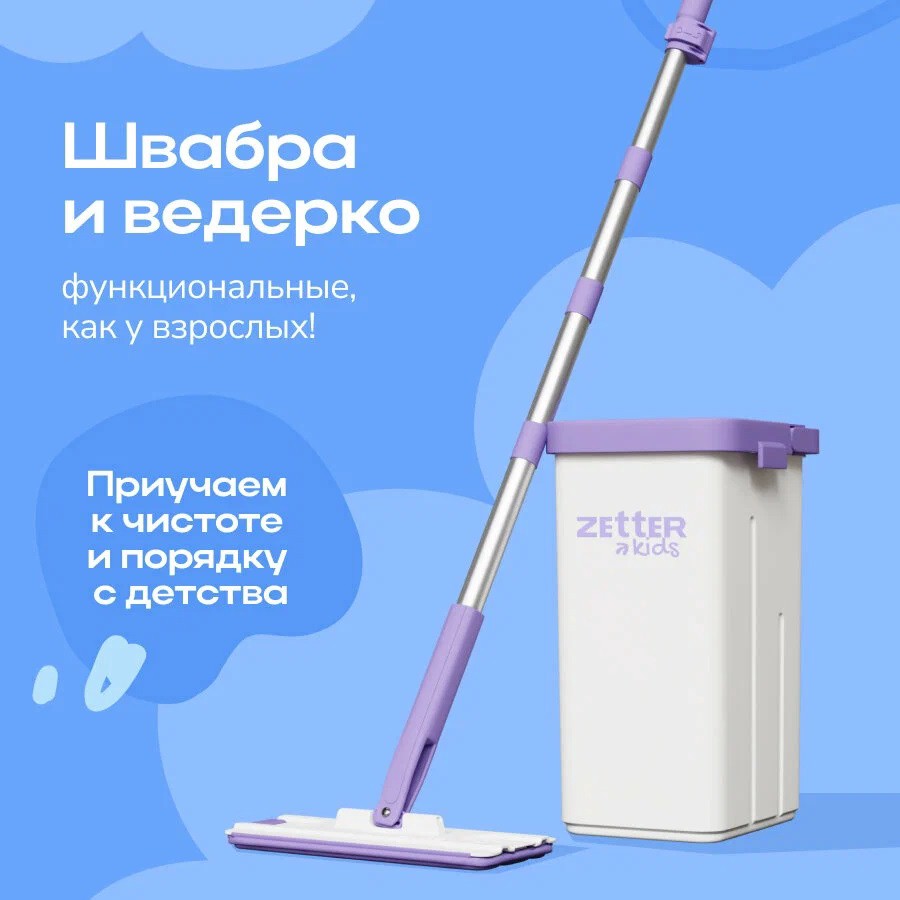Детский набор для уборки для приучения ребенка к чистоте. В комплект входит мини-швабра с телескопической ручкой (регулируется под рост), ведро объёмом 2.5 л с отжимом и двойной щёткой для очистки насадки.