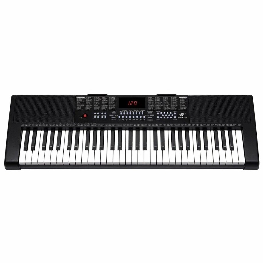 61 полноразмерная взвешенная клавиша - по ощущениям ближе к акустике, чем просто пластик. ЖК-дисплей, 255 тембров, 255 ритмов, 24 демо-песни. Встроенные функции обучения: одна клавиша, следование, ансамбль - для новичка норм. Запись и воспроизведение, метроном, перкуссия. Регулировка сустейна, вибрато, транспонирования. Есть выход на наушники - чтобы домашних не напрягать, и микрофонный вход. В комплекте микрофон уже идёт.
