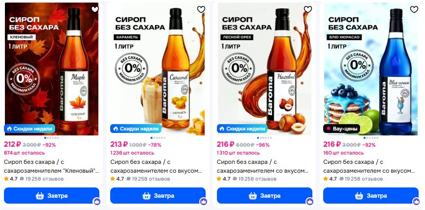 Есть разные вкусы, заказала себе с карамелью. Больше 19к отзывов! Обычно 1 литр подобных сиропов от 300р.