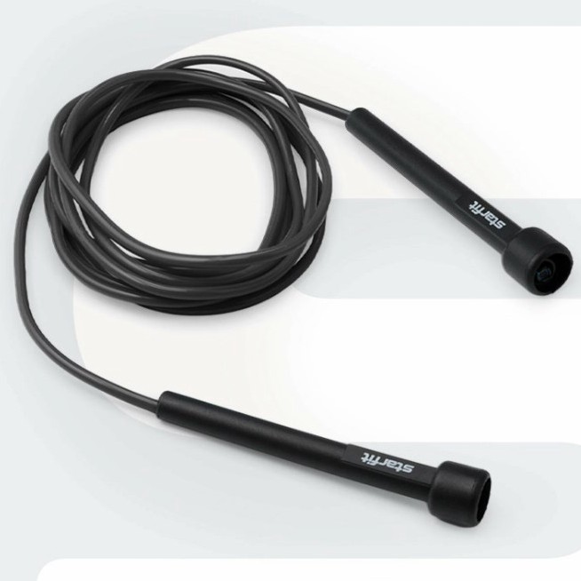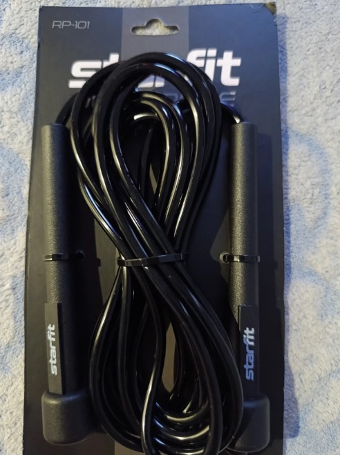 Нашла на Маркете скакалку STARFIT RP-101 за 208₽. Длина 3 м, регулируется, ручки лёгкие 12,5 см, общий вес 90 г.