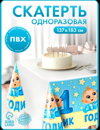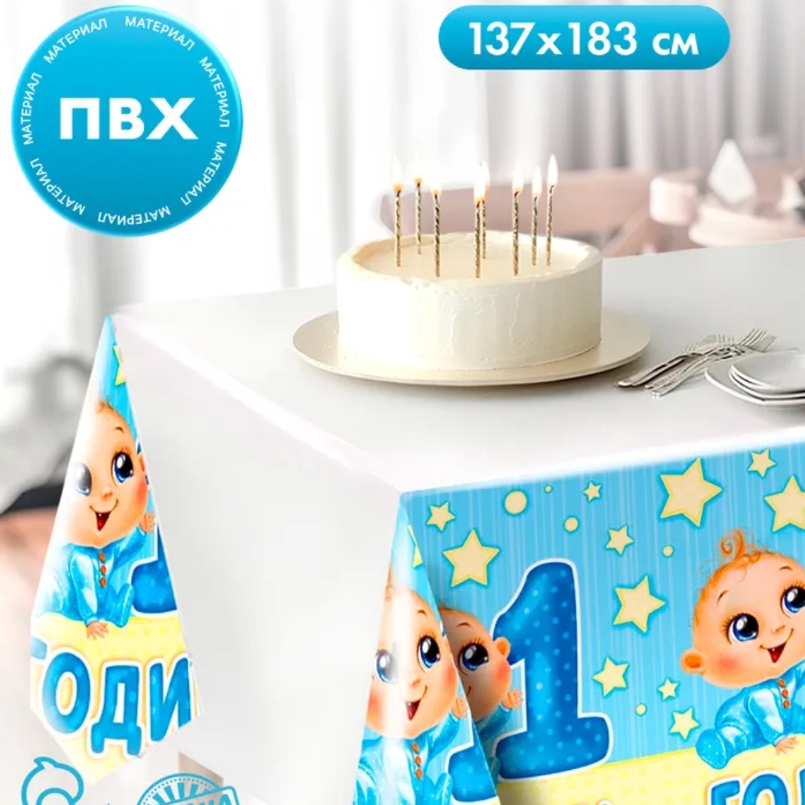 Скатерть Страна Карнавалия "1 годик", малыш, 182х137 см