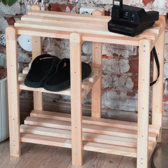 Стеллаж напольный «Астрид», сосна, 55×56×28,5 см - 975 ₽. Небольшой, удобно поставить в прихожей или гостиной под книги и мелочи.