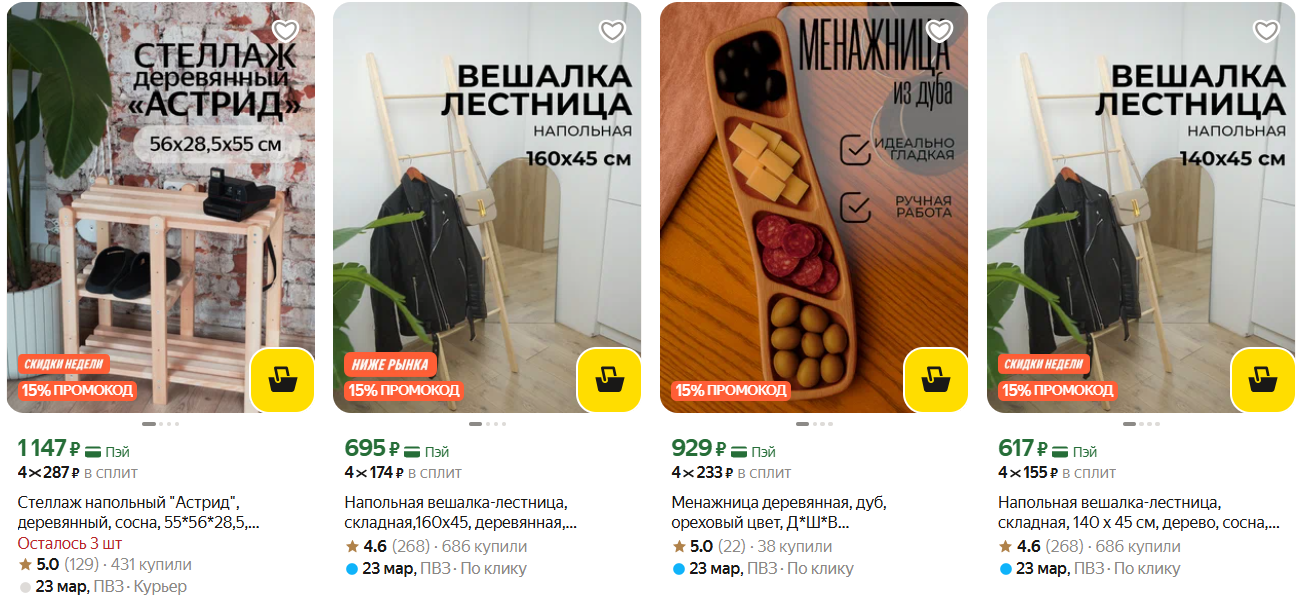 По промокод можно получить дополнительную скидку 15% на товары этого магазина. В подборке - деревянные стеллажи, вешалки и менажницы.