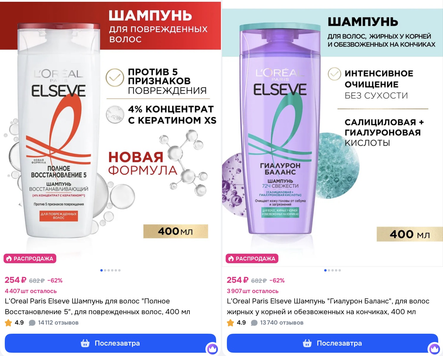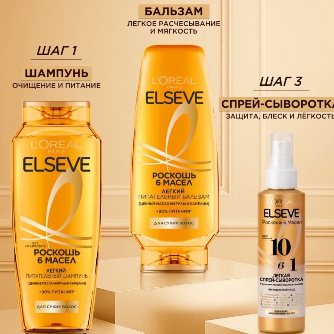 В каталоге можно найти шампуни, сыворотки, бальзамы и несмываемый уход от бренда L’Oreal Paris.