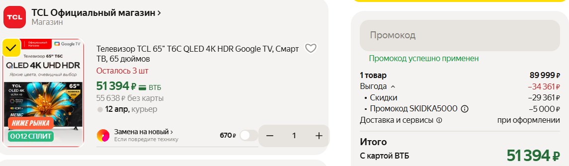 Промокоды работают на всё. Если давно присматривали технику, гаджеты, мебель или что-то крупное - сейчас лучший момент.