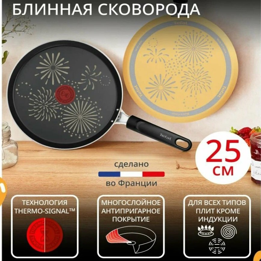 Очень рекомендую эту сковородку! Она с антипригарным титановым покрытием, на других у меня блины то прилипали, то подгорали, а теперь с индикатором нагрева я точно знаю, когда можно наливать тесто. Готовлю почти без масла, получаются румяные и не сильно жирные. Моется, кстати тоже легко, как и весит