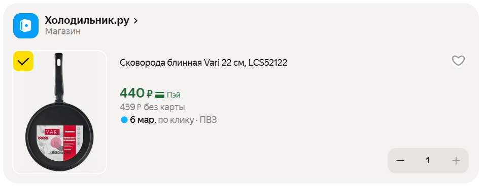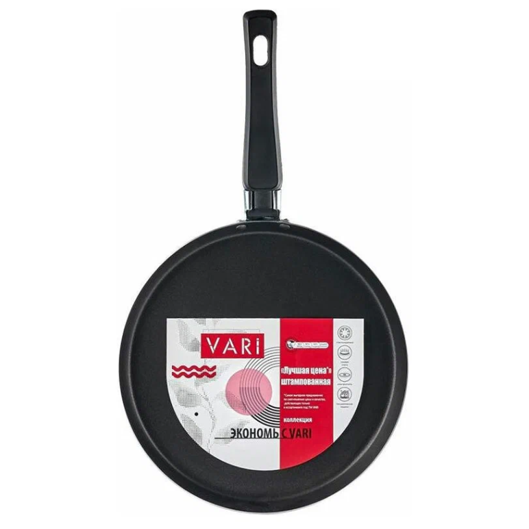 На Маркете увидел блинную сковороду VARI всего за 459 рублей. Диаметр 22 см, из штампованного алюминия с антипригарным покрытием Scandia. Ручка съёмная, бакелитовая - удобно, если места мало или нужно убрать. Можно мыть в посудомойке и использовать на газовой плите.