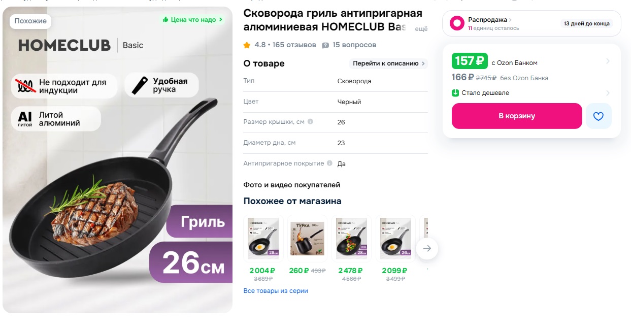 Сковорода гриль антипригарная алюминиевая HOMECLUB Basic 26 см + в описании турка 500 мл