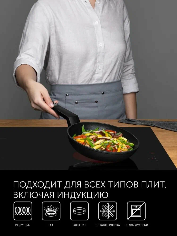 Цена классная! из кованого алюминия, подходит для любых плит, включая индукцию. Антипригарное покрытие с ионами серебра, устойчиво к царапинам.