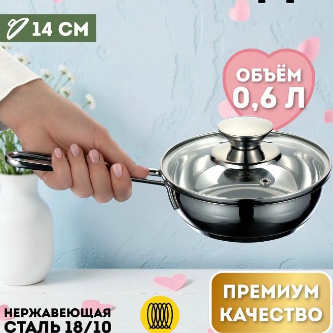 Мини-сковорода 14 см из нержавейки за 618₽ по промокоду ZZRZCWA1. С крышкой, под индукцию.