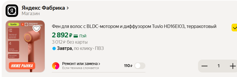 С учётом промика цена выходит самая низкая! Мощность 1600 Вт, четыре температурных режима с цветовой индикацией (холодный, тёплый, горячий и смешанный) и две скорости обдува. Функция усиленной ионизации, которая, по утверждению производителя, помогает уменьшить повреждение волос. В комплект входят магнитные насадки: концентратор для точной укладки и диффузор для создания объёма.