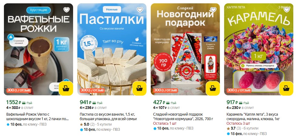 Если покупаете сладости для дома, на подарки или просто запасаетесь к чаю - есть смысл посмотреть крупные упаковки. У продавца «Эталон» на Яндекс Маркете сейчас цены ниже среднего, плюс за каждый товар дают 300 баллов Плюса, если оставить отзыв.