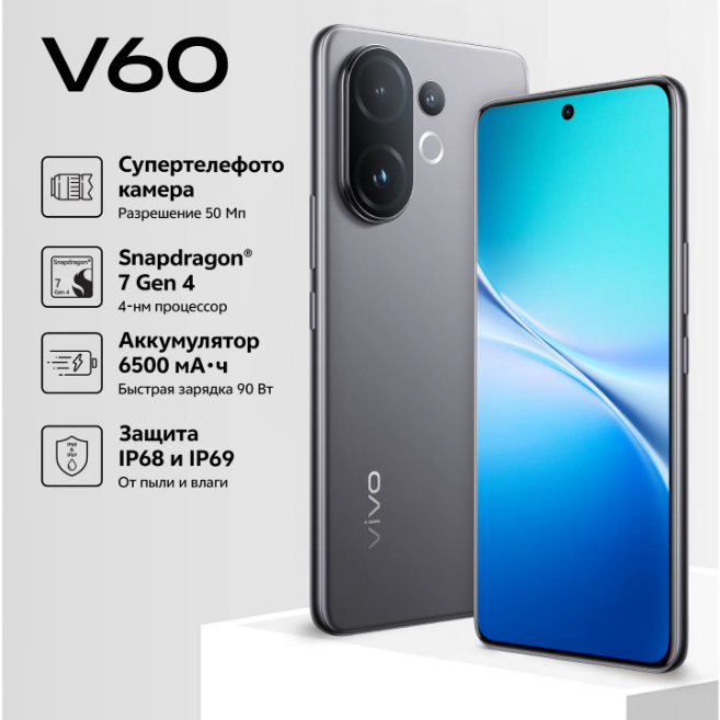 На Маркете появился интересный вариант Vivo V60. Главное, что зацепило - батарея на 6500 мАч, держит заряд полтора-два дня.