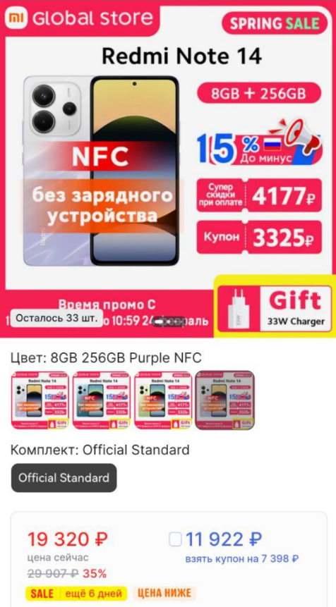 Хороший вариант за 11 тысяч с учётом купона. Процессор Helio G99 Ultra, экран AMOLED, 6.67 дюйма, 120 Гц, батарея 5500 мАч. Камера на 108 Мп. Цвета вроде на выбор есть.