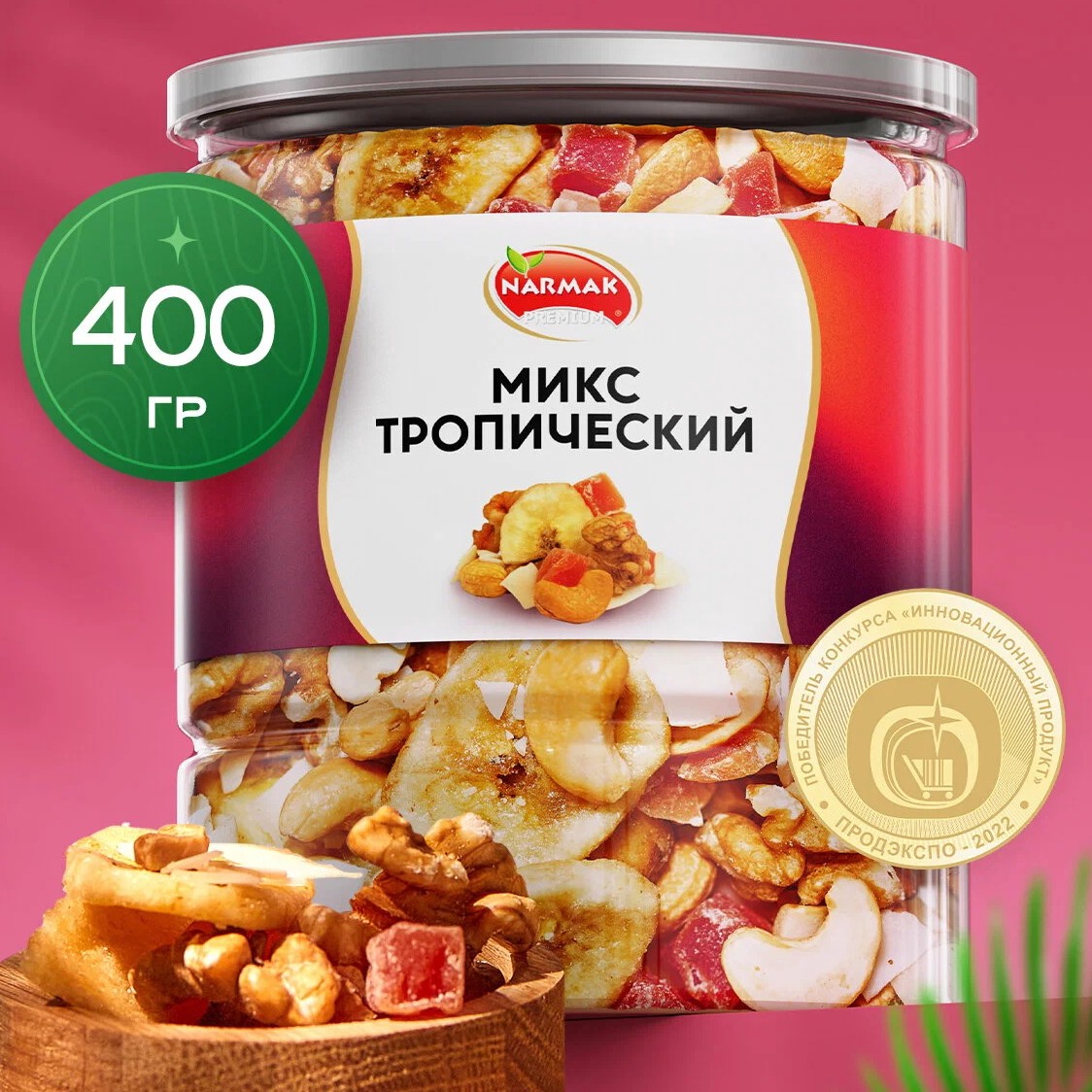 Банка 400г за 490р. Вкусная смесь из жареных орехов и сушёных тропических фруктов, обожаю такую. Классное сочетание хрустящего кешью и грецкого ореха со сладкими цукатами папайи, банановыми и кокосовыми чипсами. Отличный вариант для полезного и сытного перекуса.