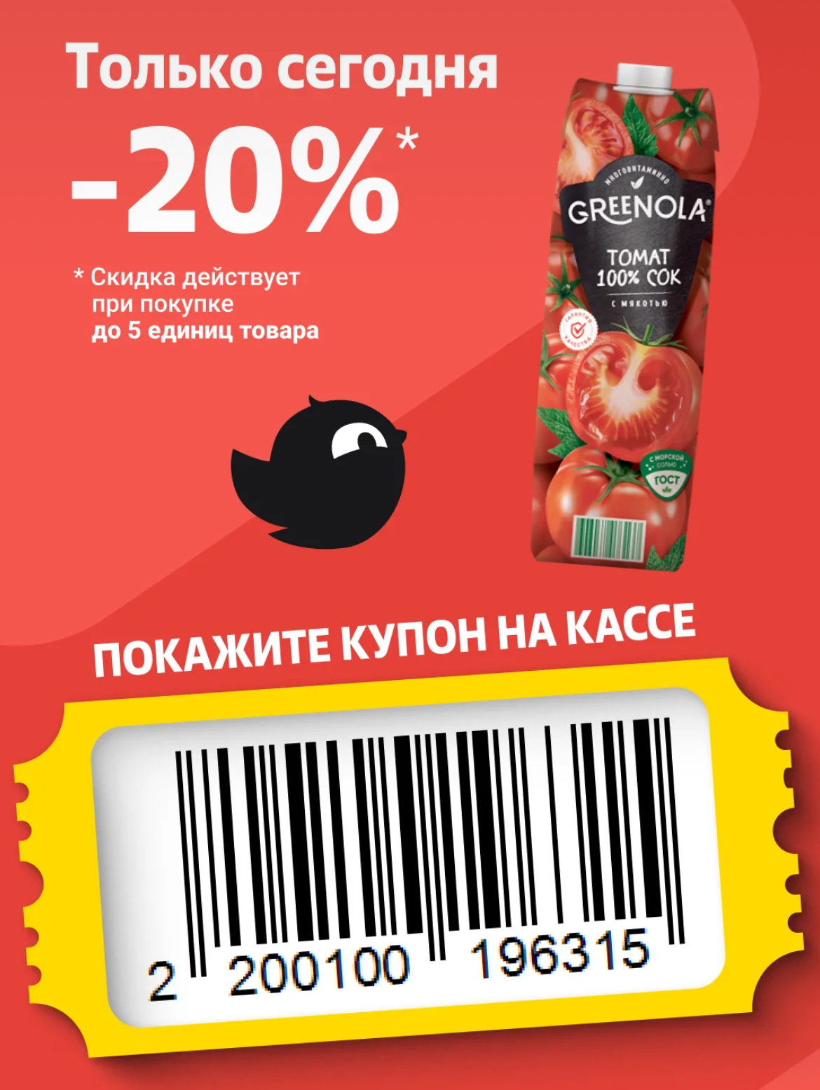 -20% по купону до конца дня. Скидка действует при покупке до 5 штук.