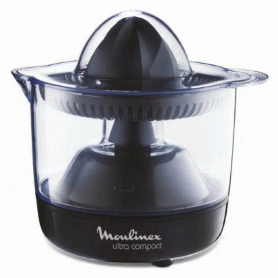 Компактная модель, насадка-конус крутится в обе стороны - выжимает максимум сока, можно делать с мякотью и без. Работает просто: нажал на конус - включилась, отпустил - остановилась. Есть защитная крышка от пыли и отсек для шнура.