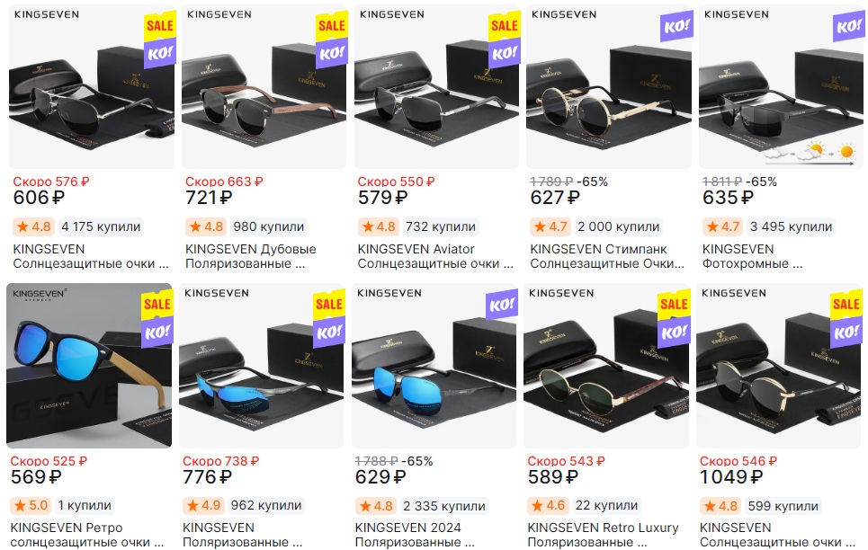 Через комбо-корзину (минимальный заказ 1000₽) можно приобрести качественные и недорогие солнцезащитные очки от бренда KINGSEVEN. На маркетплейсах такие в 2 раза дороже.