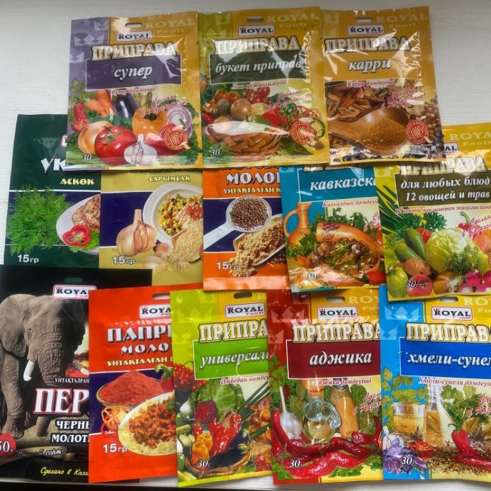 Универсальный набор специй, вакуумная упаковка, 13 предметов за 455₽. Базовый комплект для кухни. Цена с учётом баллов - 27₽ за пачку.