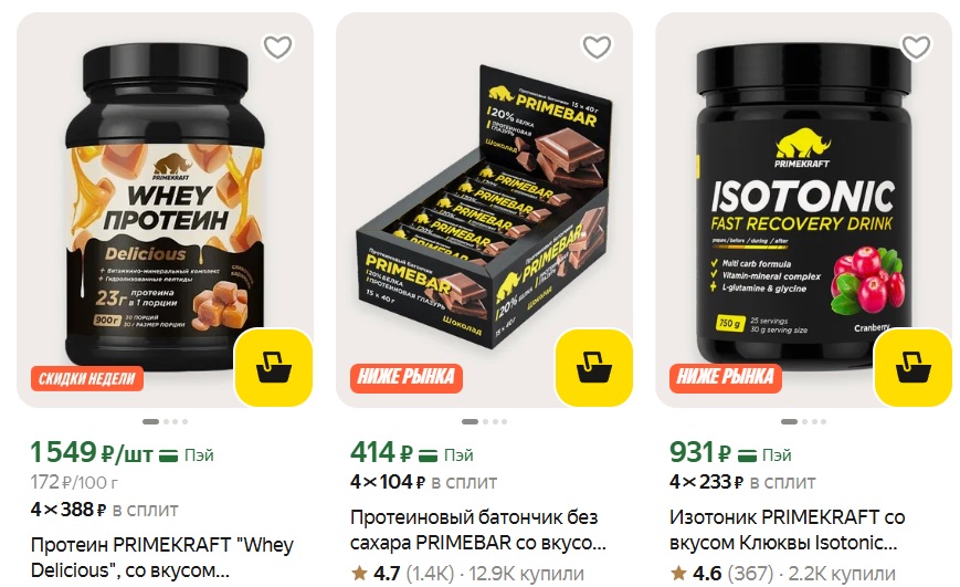Есть всё, что нужно: протеин, предтрен, креатин, аминокислоты и другое.