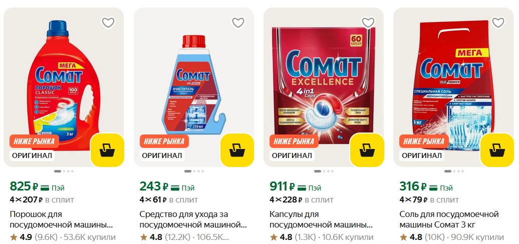 Таблетки, порошки, ополаскиватели, соль Сомат для посудомоечных машин по лучшим ценам с любимой категорией месяца. Средства качественные, проверенные, отзывы отличные.
