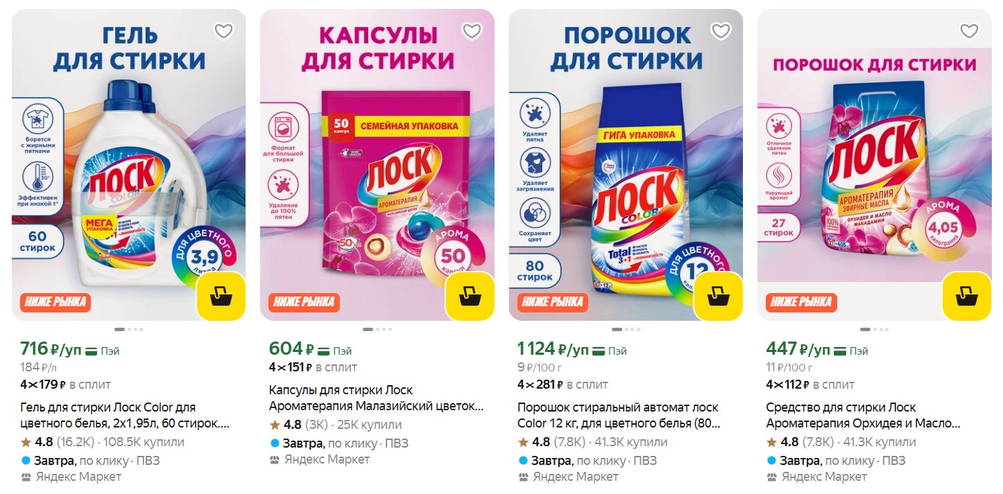 Кто пользуется средствами для стирки «Лоск» - сейчас на Яндекс Маркете хорошие цены. Сработала любимая категория месяца, так что можно запастись разными форматами: от капсул до огромных пачек порошка на 12 кг. Что нашёл в каталоге: