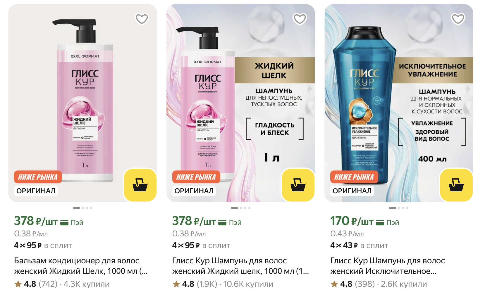 Шампунь, Жидкий шёлк, 1000 мл за 378₽