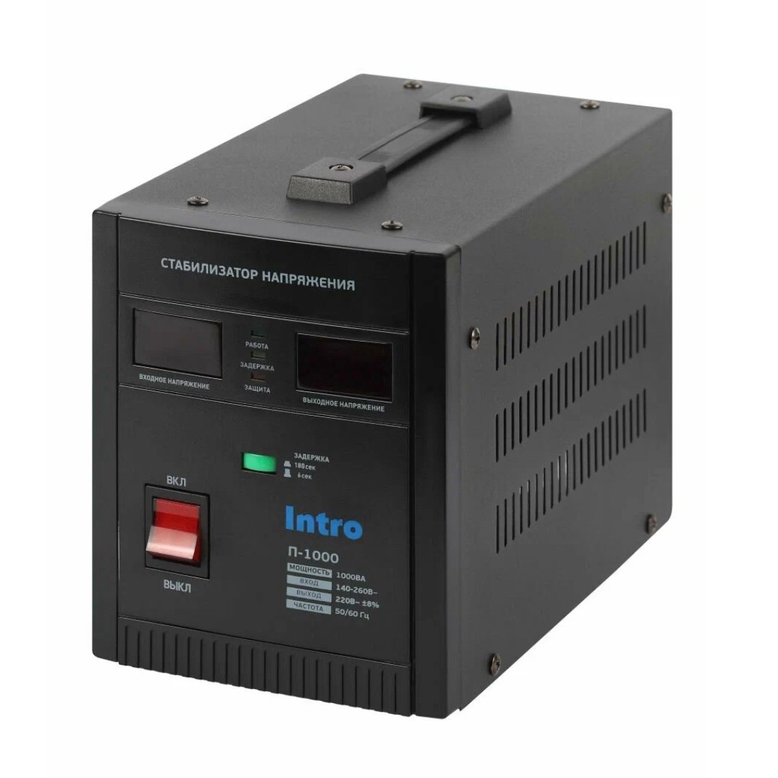 Стабилизатор напряжения 220в Intro П-1000 однофазный релейный переносной напольный 1000ВА, 140-260В
