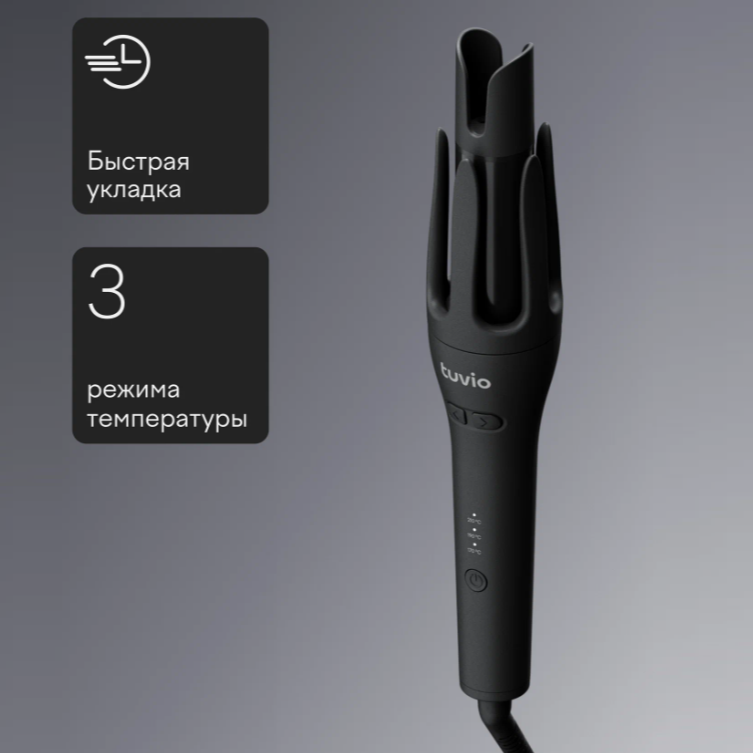 Стайлер делает завивку максимально простой: автоматическое вращение насадки формирует локон за одно движение, а благодаря керамическому покрытию устройство бережно прогревает пряди. Что обеспечивает гладкость и долговечный результат без лишних манипуляций.