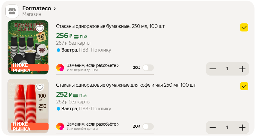 Выходит дёшево, часто беру на озон. А тут применил промокод и вышло отлично! Не размокают за пять секунд - плотный картон
