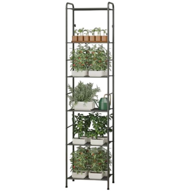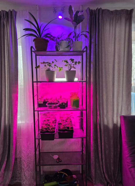Я под рассаду взяла, влезло всё: и помидоры, и перцы, и цветы. Свет проходит сквозь полки, ничего не затеняет. В собранном виде стоит устойчиво. В комплекте всё есть, собрали с мужем за полчаса.