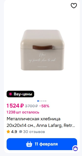 Нашла хлебницу по нормальной цене. В других местах она и правда от 1400₽, а сейчас - 715₽.