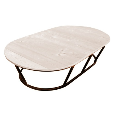 Стол для дачи, террасы или гостиной. Овальная форма, каркас металлический с порошковым покрытием (не ржавеет), столешница из сосны толщиной 20 мм, без лака. Размер в сборе 146×85×35 см, высота 35 см. Вес 17.5 кг.
