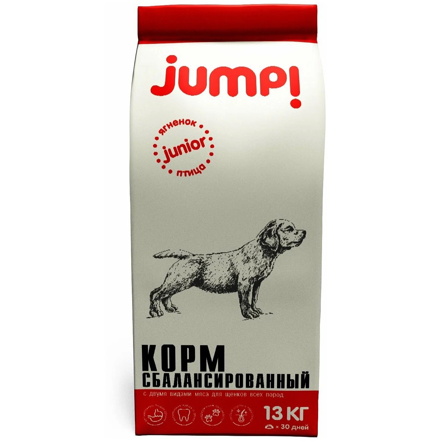 Полнорационный сухой корм Jump Junior с ягнёнком и птицей в упаковке 13 кг выходит за 1990р и начислят 200 баллов плюса за отзыв. Цена за киллограмм ~153р.