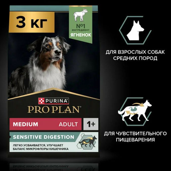 Ягнёнок в составе, пребиотики для кишечника, плюс поддержка суставов. Подходит для средних пород.